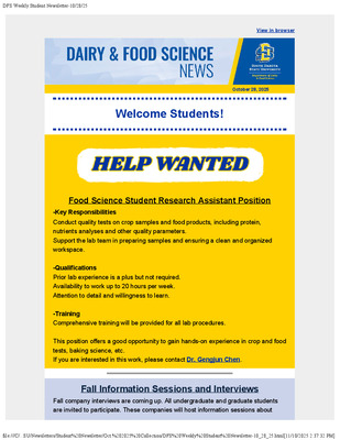 Home > College of Agriculture, Food and Environmental Sciences > Dairy and Food Science > student-news