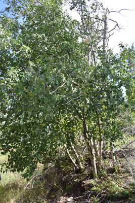 Acer glabrum is a deciduous shrub or small tree typically growing 3 to 9 meters tall, characterized by smooth to slightly rough bark. Leaves are opposite, simple, and palmately lobed with 3 to 5 lobes, measuring 5 to 12 centimeters long and 6 to 14 centimeters wide, with petioles about 3 to 9 centimeters long. Leaves are glabrous or sparsely hairy. Flowering occurs from April to June, with flowers borne in small corymbs. Each flower is about 5 to 8 millimeters in diameter, having five greenish-yellow petals approximately 2 to 3 millimeters long and 1 to 1.5 millimeters wide, and five green sepals roughly 1.5 to 3 millimeters long and 0.5 to 1.5 millimeters wide. There are eight stamens inserted around the ovary, with filaments about 3 to 5 millimeters long and small anthers. The pistil consists of two fused carpels forming a superior ovary, with a short style and a bifid stigma. The fruit is a paired samara with wings spreading at nearly 180 degrees, each samara about 15 to 25 millimeters long and 5 to 7 millimeters wide, maturing from late summer to early fall. Rocky Mountain maple is native to western North America and is found in South Dakota primarily in the Black Hills, growing in montane forests and along stream banks.