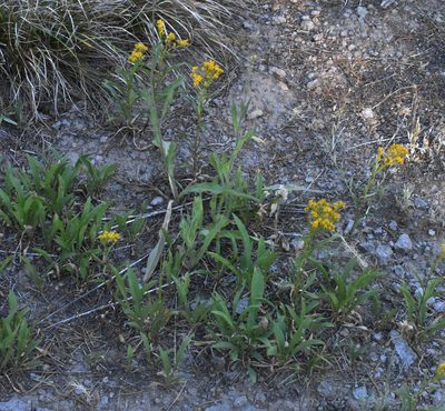 Zizia aptera is a perennial herb, erect with simple or branching stems which grow from a fleshy root and attain 30 to 70 cm in height. The basal leaves are chordate, simple 4-7 cm long and 3-5 cm wide, with petioles 5-10 cm long, with toothed margins. The cauline leaves are alternate, ternately divided, the divisions with margins having small teeth and often lobed. The inflorescences are loose compound umbels 5-7 cm across, attached to a long peduncle (6-10 cm) each with 7 to 15 umbellets attached by unequal pedicels (1-3 cm long) to terminal umbels of 12-18 flowers. Each tiny (< 3 mm) flower has 5 petals that remain nearly closed. The fruit is an oblong schizocarp ~ 3 mm long. Heartleaf Alexanders bloom from late April to July on moist meadows, prairies and open wooded hillsides.